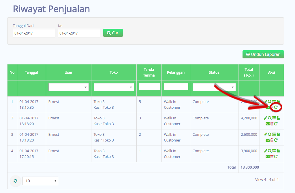 2 Silahkan Pilih Transaksi yang akan di return, kemudian pilih tombol seperti pada gambar
